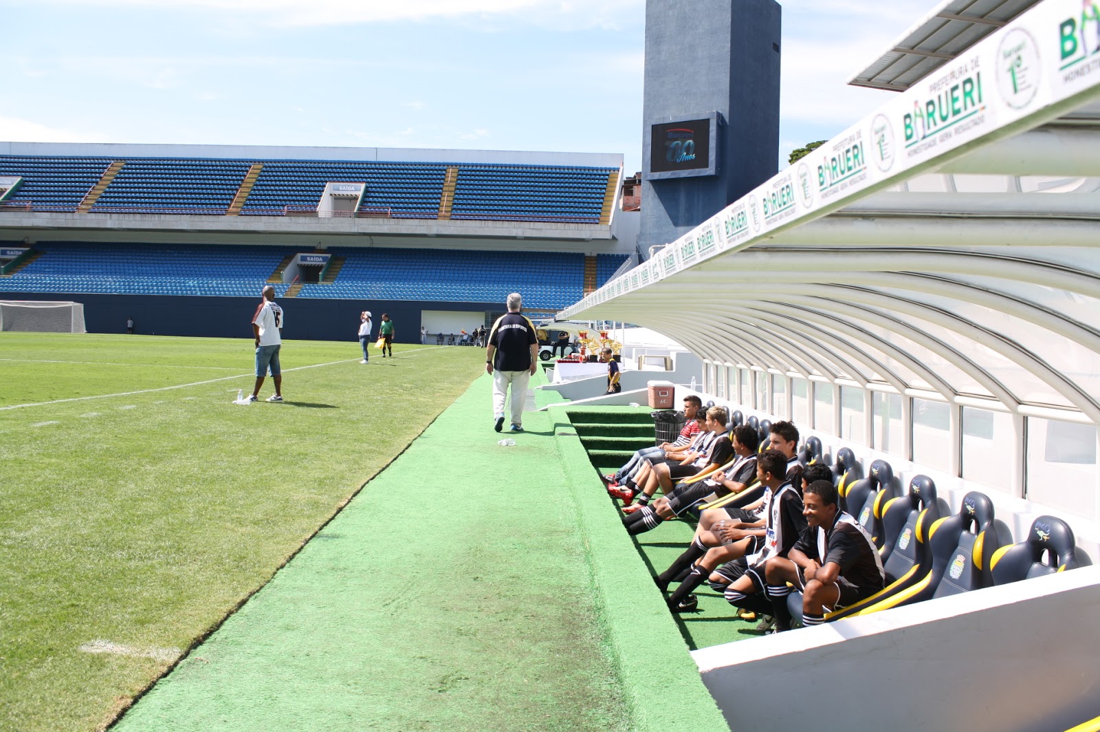 O secretário de Esportes de Barueri, Paulo Sérgio Silvestre do Nascimento, esteve na tarde desta quinta-feira, 3, juntamente com o secretário adjunto Fernando Rodrigues e o gestor do Grêmio Recreativo Barueri (GRB), Demétrius Ferreira, vistoriando a Arena Barueri, ultimando os detalhes finais para a abertura da Copa São Paulo de Futebol Junior, neste sábado, 5.